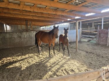 Ушул Ат сатылат бою улагы урганы гарантия скорость жакшы Основные особенности: - тип:жазга 4жаш - масть: гнедая, белая проточина на голове - комплектация на фото: уздечка, недоуздок, повод, седло...