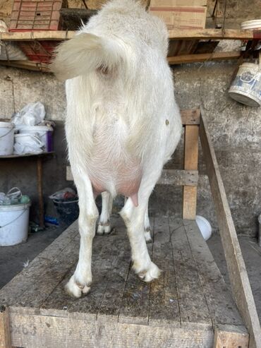В комплекте на фото — деревянный дойный станок с фиксатором головы и площадкой для кормушки: облегчает доение и уход (подрезка копыт, осмотр, ветеринарные процедуры).