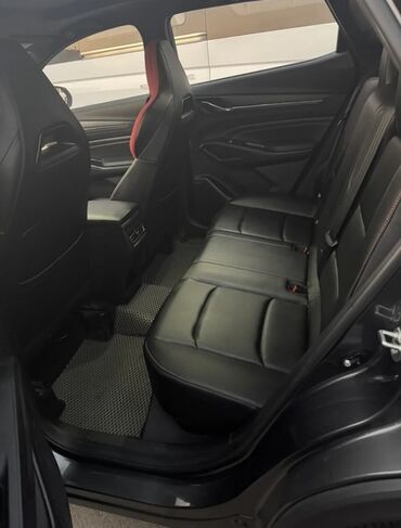 - Спортивные сиденья с выраженной боковой поддержкой, комбинация чёрной кожи и красной алькантары/эко-кожи, прострочка