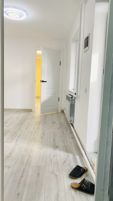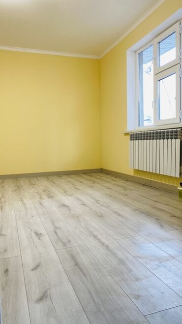 - Светлая комната с окнами ПВХ, ламинат светлых тонов, потолочный LED‑светильник.