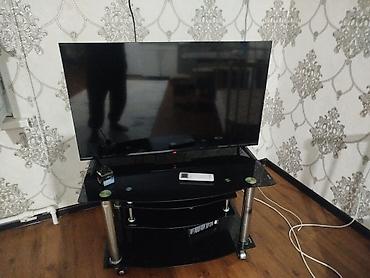 Телевизор LED, диагональ около 43–50". Плоская панель с тонкими рамками, настольная установка на тумбе. Поддержка цифрового эфирного ТВ (DVB-T/T2), есть мультимедийный USB-вход для воспроизведения фильмов и музыки с флешки. На задней панели — набор стандартных разъёмов (HDMI, антенный вход, AV/аудио), удобный доступ снизу. Управление пультом ДУ.