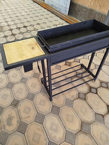 Мангал-барбекю с рабочим столом и аксессуарами ** УСТУПКА БУДЕТ** - Комплект из прочной металлической жаровни на стойках и отдельного стола-подставки. - Столешницы из дерева с пропиткой; одна вста...