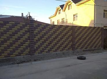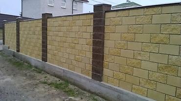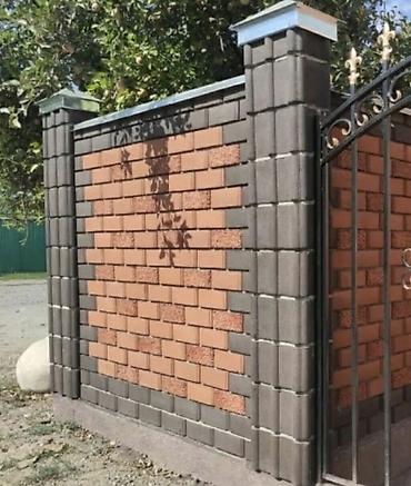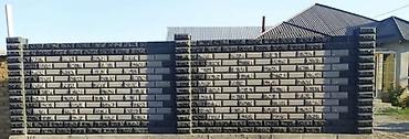 Забор из декоративного бетонного блока «под кирпич» - Материал: вибропрессованный бетонный блок с фактурой «колотый кирпич». - Цвет: графит/темно‑серый с легкой вариативностью оттенков. - Конструк...