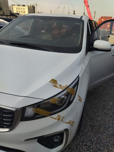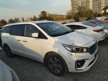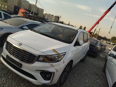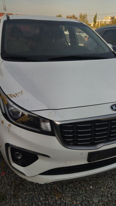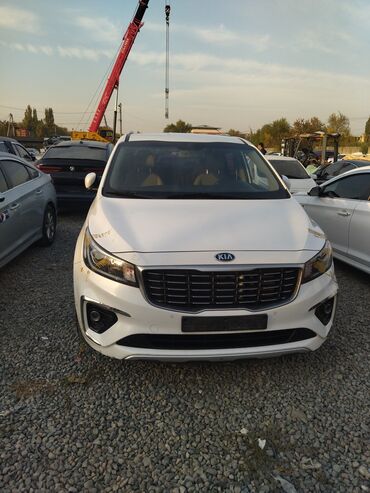Kia Carnival (Grand Carnival) белого цвета, рестайлинг. Многофункциональный 7/8‑местный минивэн бизнес‑класса с просторным салоном и высоким уровнем комфорта.