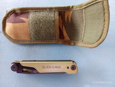 Отлично подходит для EDC, рыбалки, туризма, мелкого ремонта и выездов на природу. На рукояти и клипсе нанесён логотип BLACK EAGLE. Дата на фото: 27.10.2025.
