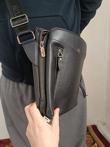 Мужская сумка через плечо BUQIN (логотип на молниях) из черной фактурной натуральной кожи