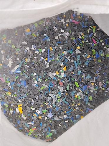 - Состав: полипропилен (PP) и полиэтилен (PE) смешанных цветов; преобладает тёмная база с вкраплениями цветных фракций.