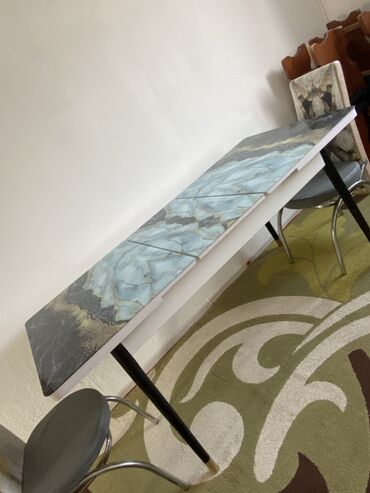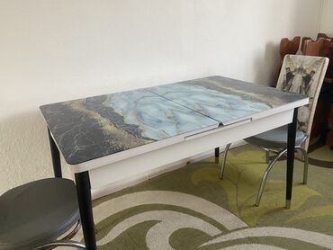 - Тип: кухонный/обеденный стол-книжка с центральной вставкой. По фото видно механизм раздвижения: две половины разъезжаются, по центру поднимается дополнительная секция, увеличивая полезную площадь.