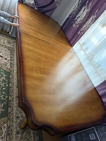 Большой деревянный обеденный стол в классическом стиле. Брали за 23.000 сом Размеры стола: 250 см × 120 см (длина × ширина). Высота примерно 75-80 см - Материал: из натурального дерева с лаковым п...