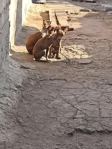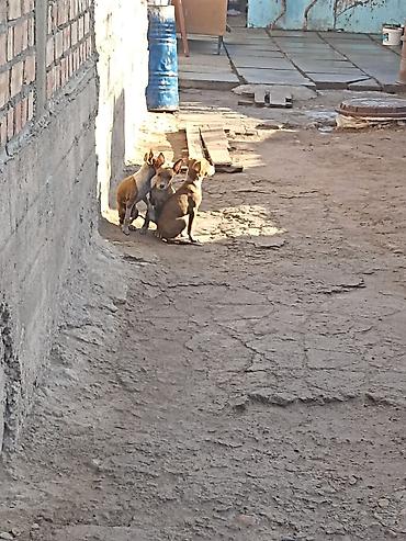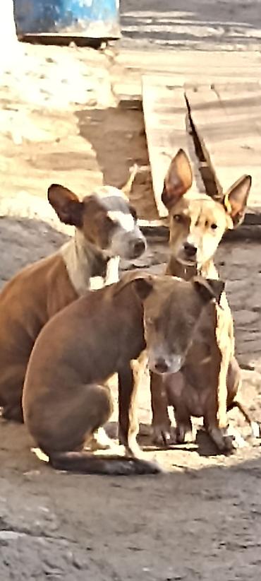 АмстаффЩенки небольшого размера (примерно 30–40 см в холке во взрослом возрасте), короткошёрстные, гладкая шерсть рыже‑коричневых оттенков с белыми отметинами. У всех стоячие крупные уши, стройное телосложение, длинные лапы — подойдут для активных хозяев и двора/дома.