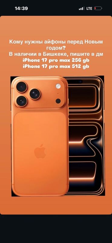 IPhone 17 Pro Max e-sim новый (серия с двумя и тремя камерами) — оранжевый цвет корпуса. На фото — заводские коробки. Ключевые особенности: - Яркий оранжевый цвет (special/limited colorway). - Дво...