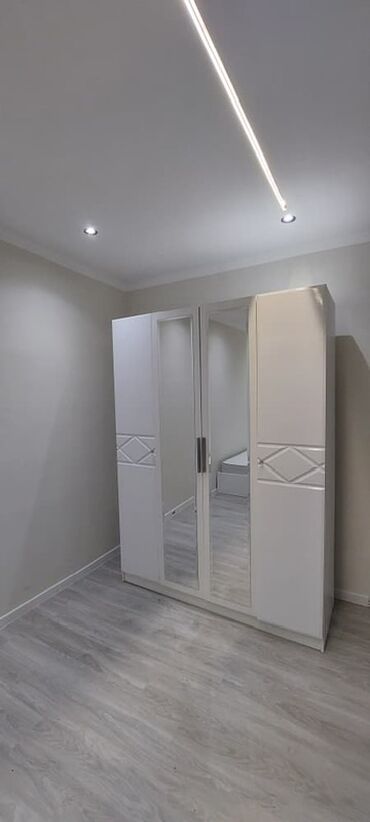- Шкаф — широкоформатный, трехдверный, высота до потолка не доходит.