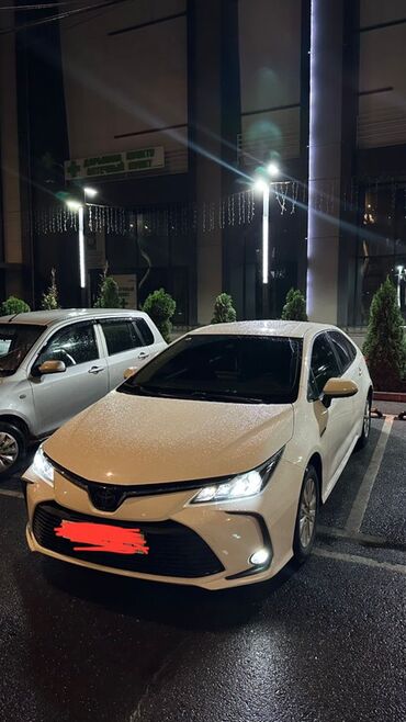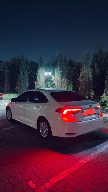 Toyota Corolla, белый седан (поколение с узкими светодиодными фарами и широким трапециевидным воздухозаборником спереди).