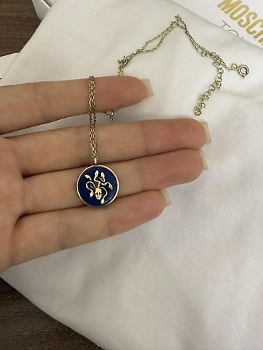 - Подвеска: круглая медальон-табличка с эмалью насыщенного темно‑синего цвета.