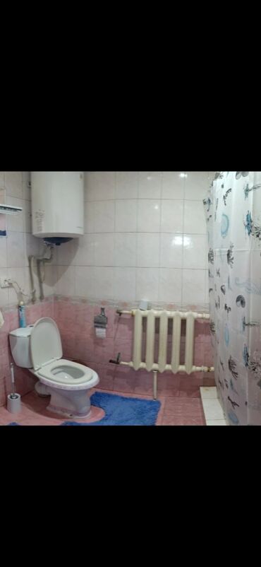 - Санузел совмещённый: керамическая плитка, унитаз, полотенцесушитель/радиатор, электрический бойлер для горячей воды, душевая зона со шторкой.