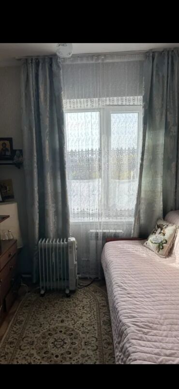 - Комнаты светлые: большое окно с двойными шторами (тюль и плотные портьеры), на полу ковровая дорожка, есть место под кровать/диван и комод.