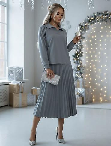 Юбка плиссе миди, серый меланж