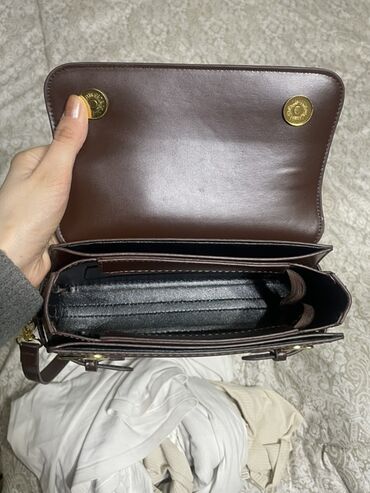 - Фурнитура: металлическая в золотистом цвете (пряжки по бокам, карабины, магнитные кнопки на клапане).