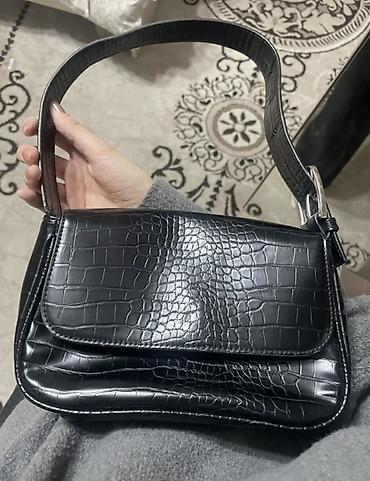 Сумка на плечо, черная, под кожу крокодила. - Материал: гладкая