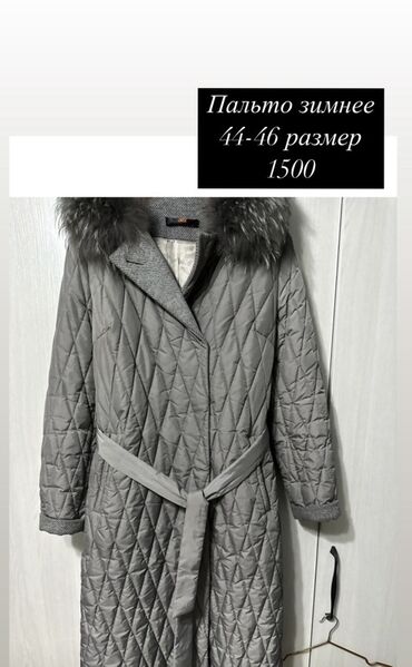 2) Пальто зимнее, размер 44–46 — 1500. Стеганая модель с утеплением, диагональная стежка «ромб», пояс на талии, отложной воротник с пышной меховой отделкой. Манжеты с контрастной тканевой подкладкой, длина миди для лучшей защиты от холода.