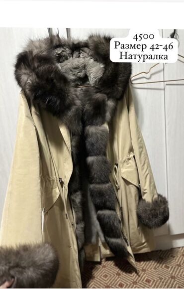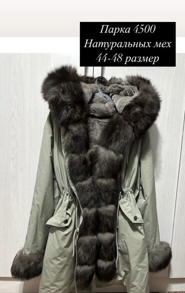 3) Парка, натуральный мех, размер 44–48 — 4500. Верх из плотной влагостойкой ткани хаки, кулиски по талии для регулировки посадки, объемный капюшон и планка с роскошной меховой опушкой, меховые манжеты. Большие накладные карманы с клапанами, удлиненный силуэт.