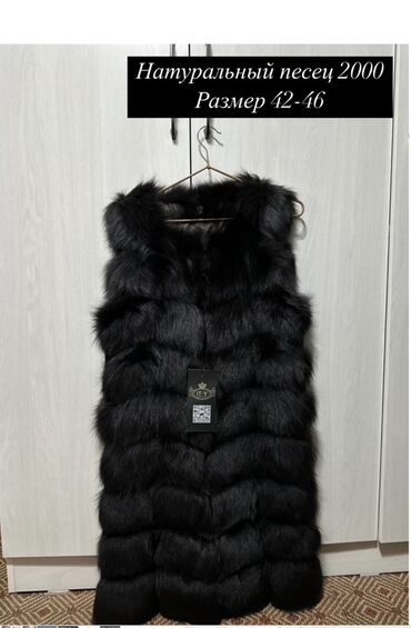 4) Жилет из натурального песца, размер 42–46 — 2000. Глубокий черный цвет, поперечные меховые полосы создают объем и тепло, безрукавная модель, длина ниже бедра. Бирка на месте. Идеален для сочетания с платьями, свитерами и кожаными изделиями.