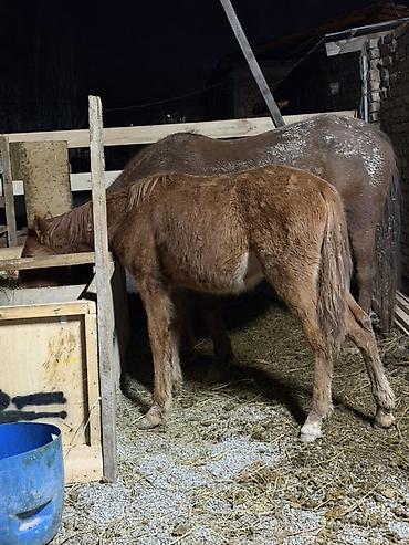 - Возраст: молодой жеребёнок (на фото рядом с кобылой-матерью).
