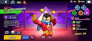 - Эль Сверчок, сила 11 (макс. ур.), здоровье 13 000, атака супер «Могучий локоть», открыты гаджеты/звёздные силы/снаряжения.
