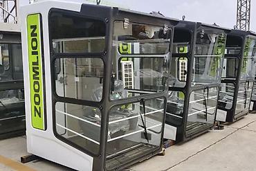 - Просторная кабина оператора с панорамным остеклением, эргономичным пультом и климатическим блоком для работы в жару и холод.