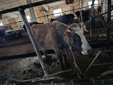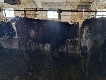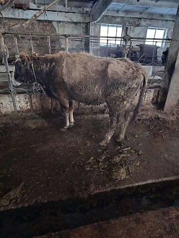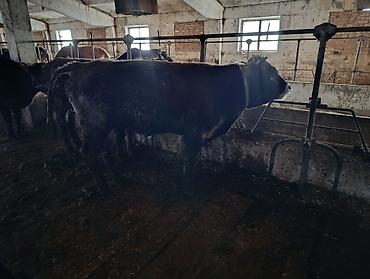 Телята мясного направления - Группа телят разного окраса, содержание в тёплом стойле на подстилке. - Возраст визуально: молочный/послемолочный период, молодняк. - Тип: мясные и помесные (широкая г...