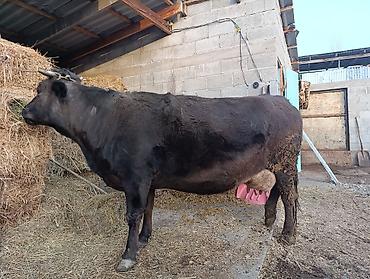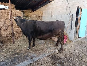 Корова с новорождённым телёнком. - Порода: черно-пёстрая (молочного направления). - Телёнок только что отёлён, на фото вместе с матерью. - Выраженное молочное вымя, ровные дойки, удобный доступ дл...