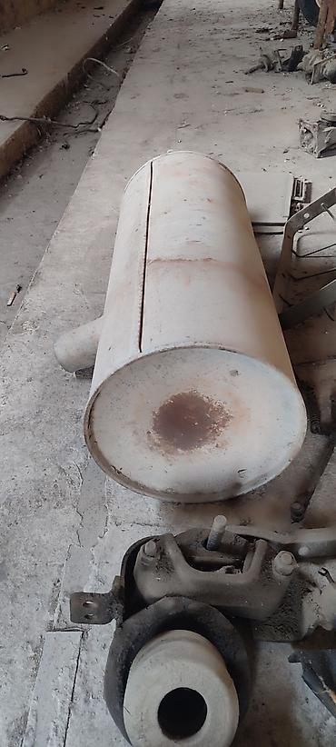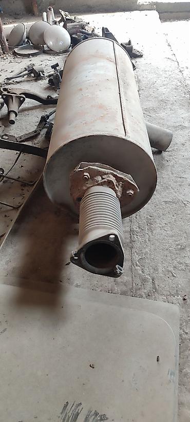 Глушитель/резонатор выхлопной системы для автомобиля. Характеристики: - Материал: металл (сталь). - Конструкция: продолговатый корпус с входной/выходной трубами, крепёжная лапка на корпусе. - Тип:...