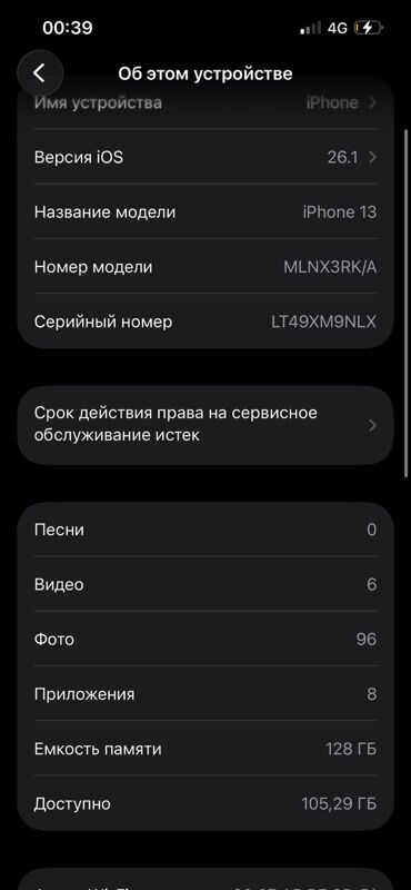 - В меню «Об этом устройстве» отображается истекший срок права на сервисное обслуживание