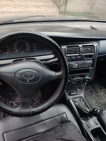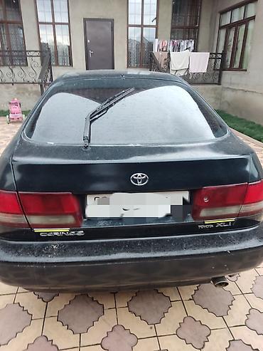 Toyota Avensis, седан, темно‑зеленый цвет, кузов T22 (примерно конец 1990‑х – начало 2000‑х). Передний привод. Литые диски R15. Задние фонари «евро» для этого поколения, одинарный выхлоп. Задний па...