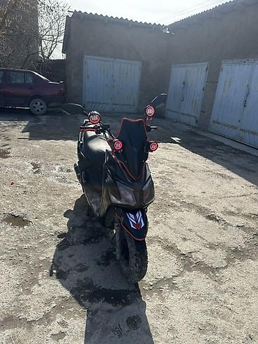Скутер BARS 150 (пример модели по наклейкам) с цифровой приборной панелью и багажным кофром. Основные характеристики и оснащение: - Двигатель 4‑тактный, ориентировочно 150 см³ (по классу модели BA...