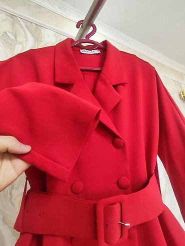 Состояние: один выход / как новый • Материал: эко-кожа • Цвет: чёрный • Фасон: двубортный, с поясом • Длина: миди • Детали: погоны, регулируемые манжеты • Отлично держит форму • Подчёркивает...