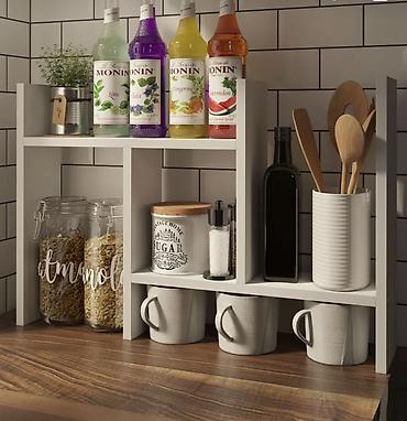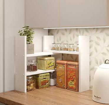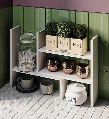 - Компактная полочная система для рабочей поверхности кухни.