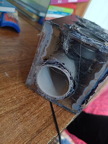 - Корпус: из листового пластика/оргстекла с горячим клеем и герметиком; внутри установлен фазоинвертор (ПВХ‑труба) с выходом сбоку и сверху.