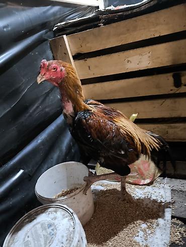 Петух бойцовой породы (похож на ашиль/малайского типа). Характеристики: - Высокий рост, мощные длинные ноги, крепкий костяк - Узкое вытянутое тело, развитая грудь - Голова с ярко‑красным гребнем и...