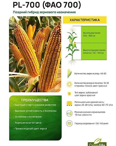 Семена кукурузы сорт ,,Ала-тоо" гибрид ф1.направление зерно -силос. вегетация 125 дней.урожайность по силосной массе до 80 т./га.урожайность по зерну до15т/га, коллорийность11.5%протеин.