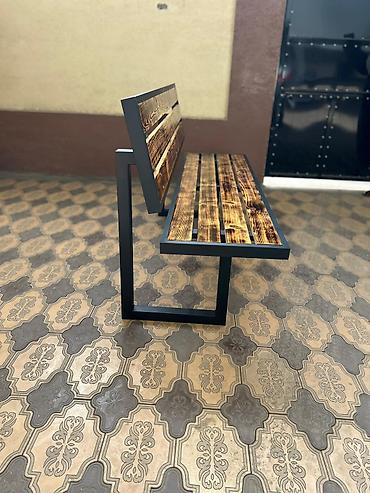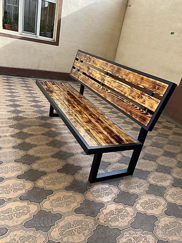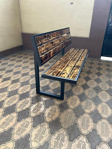 Скамья и Тапчан для террасы/сада с металлическим каркасом и тапчан.Размер тапчана 3,60м*3,10м цена 35000.Скамейка 7000 сом - Конструкция: прочный сварной каркас из металла с прямыми подлокотникам...