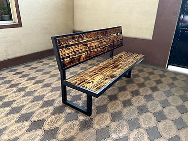 Уличные лавки на металлическом каркасе - Конструкция: прочная рама из профильной стальной трубы, сварная. Усиленные поперечины для жесткости. - Сиденье: массивные деревянные доски, обожженные/тони...