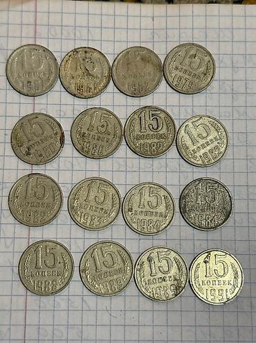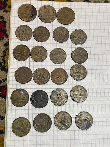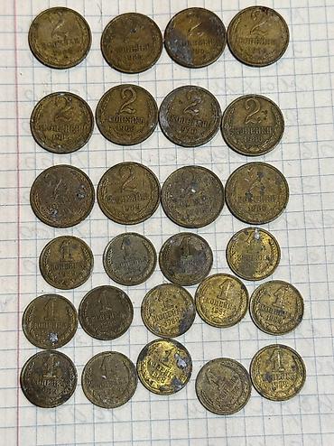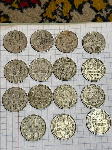 продаю советские монеты. список какие, сколько штук, наминал и год есть на фото. цена за 1 монету 10 сом