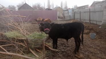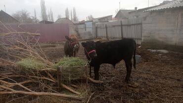 Телки на откорме - Несколько голов молодняка, рогатые, ушные бирки установлены. - Содержатся в крытом стойле с поилками и кормушками. - Откорм на зернофураже и сене; доступны мешки комбикорма. - ...