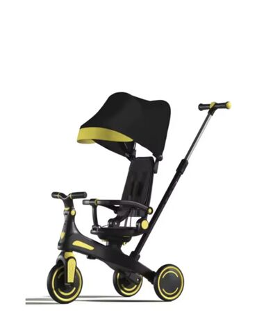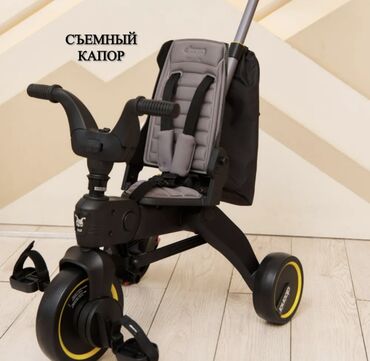 Велосипед по мере роста ребенка может трансформироваться в обычный велосипед на трех колесах. Для этого понадобится всего лишь снять родительскую ручку, крышу, поручень безопасности.