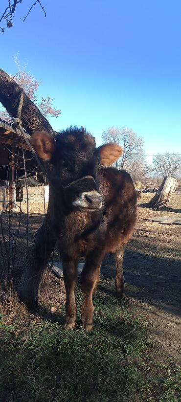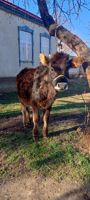 Телека (молодняк), черно-пестрой масти, с рогами. На ушах бирка. Держится на привязи, спокойно реагирует на человека и транспорт. Телосложение крепкое, ровная спина, выраженная мускулатура, прямые ...