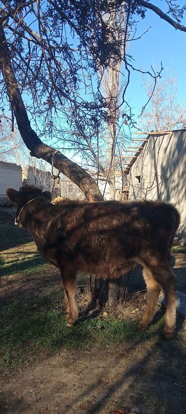 Продаётся корова (бычок/тёлка на фото — тёмно‑бурой масти с белыми отметинами на ноги и хвосте). Особенности: - Возраст визуально молодой, крепкое телосложение. - Рога средние, симметричные. ...