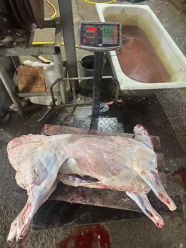 - Вес: на фото показано взвешивание туши на электронных весах (ориентир по массе можно видеть на дисплее).