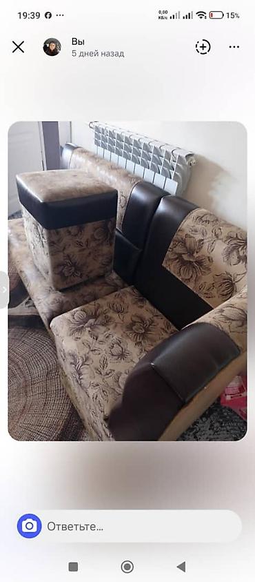 Диван с пуфом и набор посуды