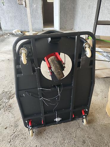 - Переднее пневмоколесо; сзади — поворотные ролики для свободного скольжения.